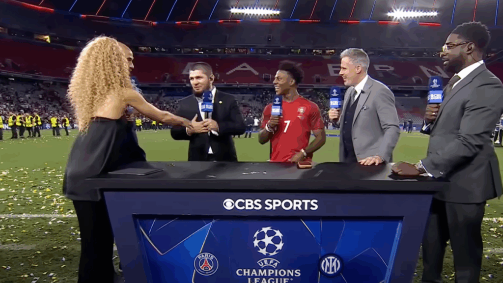 UFC champion Khabib Nurmagomedov and CBS presenter Kate Abdo have been praised for how ‘well’ they handled an awkward moment at the Champions League Final.
