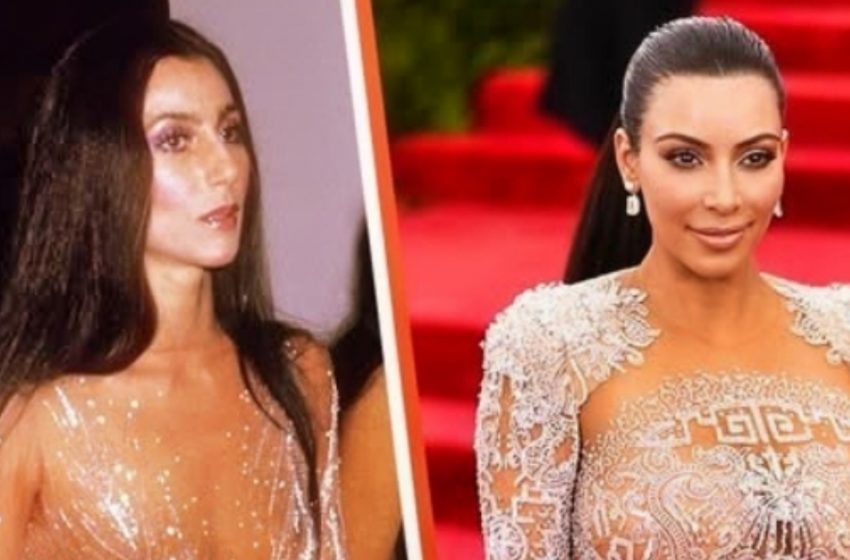 Years before her Monroe moment, Kim channeled Cher at the 2015 Met Gala, wearing a sheer, beaded gown by Roberto Cavalli that paid homage to the Bob Mackie look Cher famously wore to the 1974 Met Gala. Kardashian has openly cited Cher as one of her biggest fashion inspirations.
