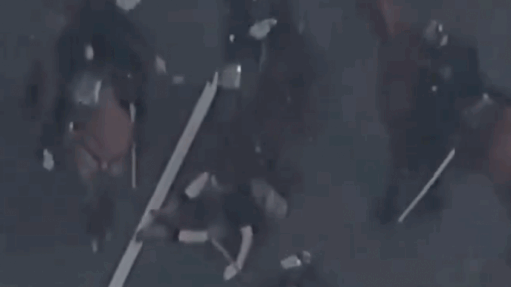 One iteration of the social media clip, which also aired on national television, showed a person wearing a backpack lying in the road surrounded by police both on foot and horseback.