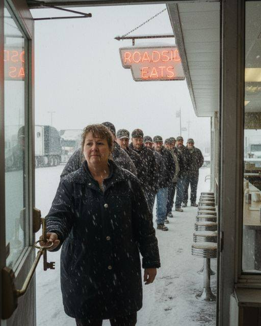 The storm rolled in faster than anyone expected, turning the world into a white blur. I hadn’t planned to open the diner, but when I saw the line of trucks idling on the highway and a driver knocking, frost in his beard, asking for coffee, I couldn’t say no. My grandmother’s voice echoed in my head: When in doubt, feed people.