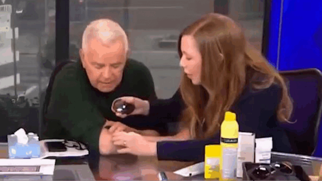 Shocking moment TV host is told he has skin cancer by a dermatologist live on-air